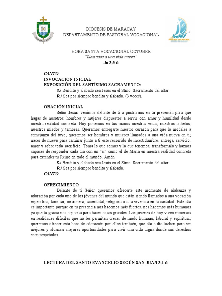 vocaciones sacerdotales, religiosas, matrimonial y misioneras de la Diócesis de Maracay. Sé