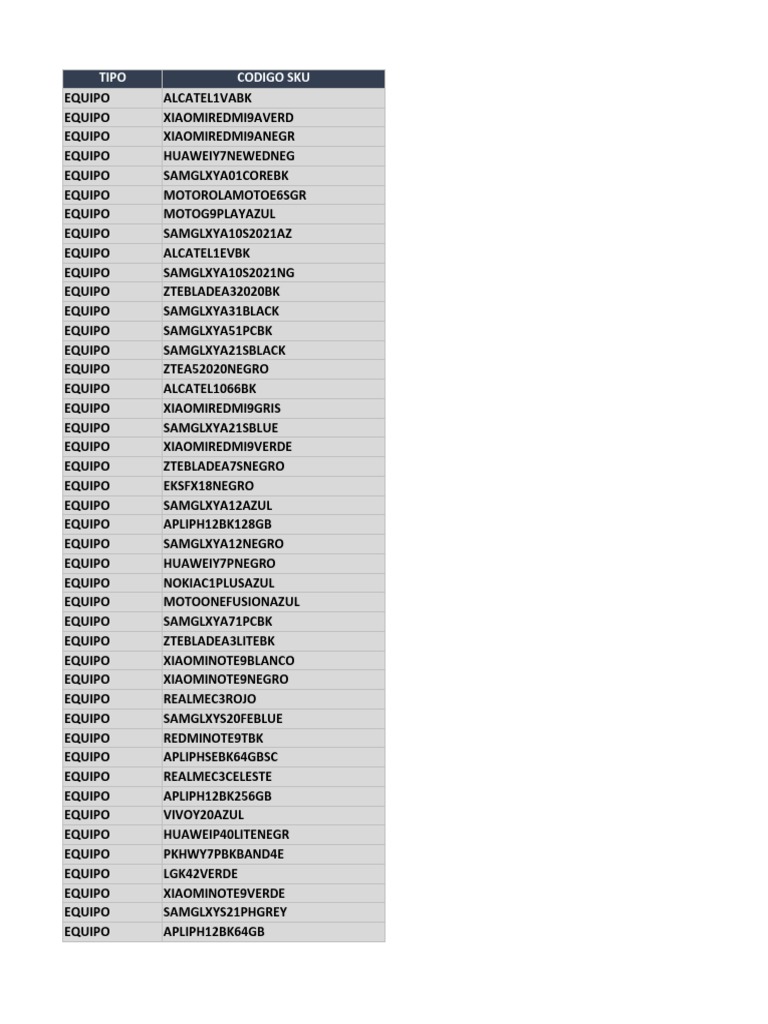 TIPO CODIGO SKU