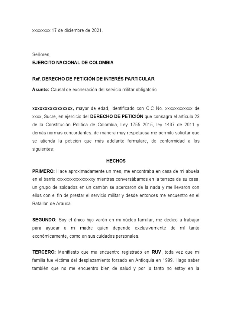 xxxx, Sucre, en ejercicio del DERECHO DE PETICIÓN que consagra el artículo 23