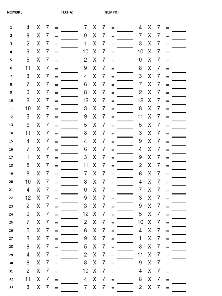 3 2 X 7 = 14 1 X 7 = 7 3 X 7 = 21