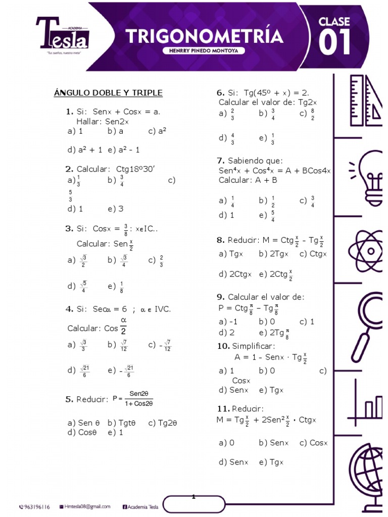 1. Si: Senx + Cosx = a. a) 2 b) 3 c) 8