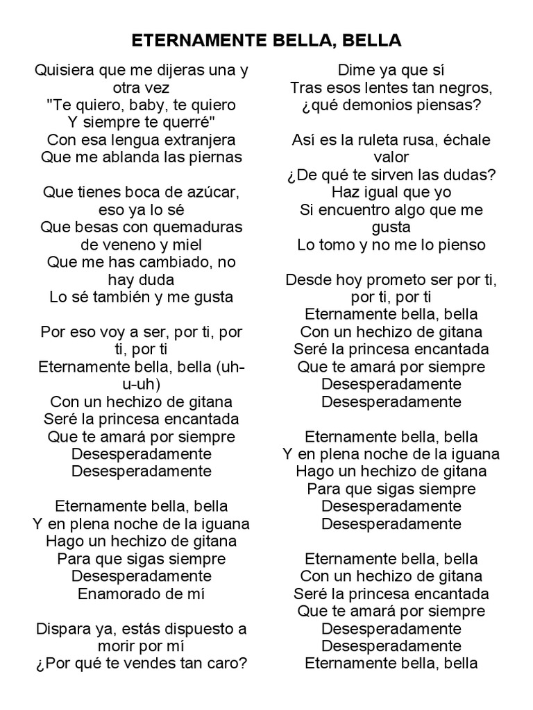 Por eso voy a ser, por ti, por Con un hechizo de gitana