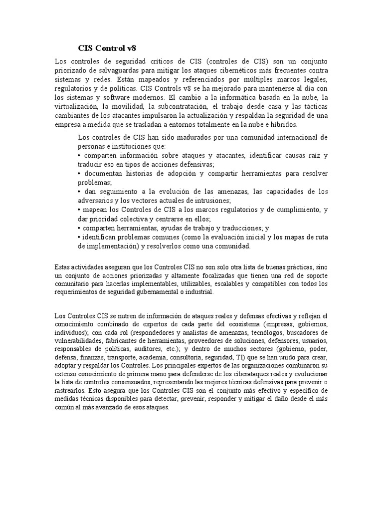 regulatorios y de políticas. CIS Controls v8 se ha mejorado para mantenerse al día con