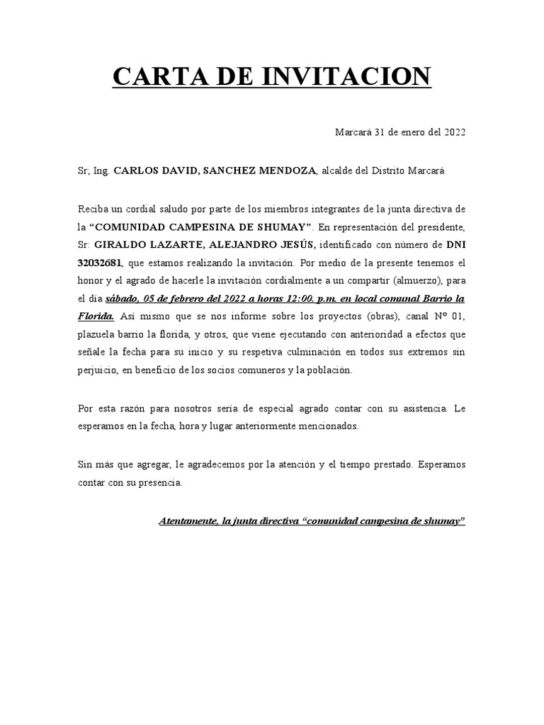 CARTA DE INVITACION