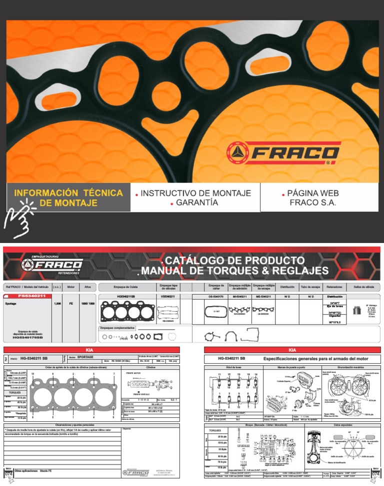 Ref FRACO / Modelo del Vehículo ( c.c. ) Motor Años Empaque de Culata Empaque tapa Empaque de Empaque múltiple Empaque múltiple Distribución Tubo de escape Retenedores Sellos de válvula