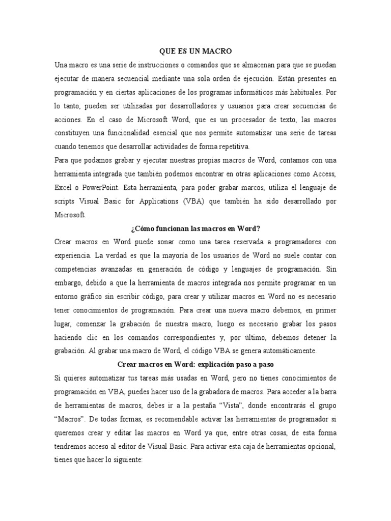 acciones. En el caso de Microsoft Word, que es un procesador de texto, las macros