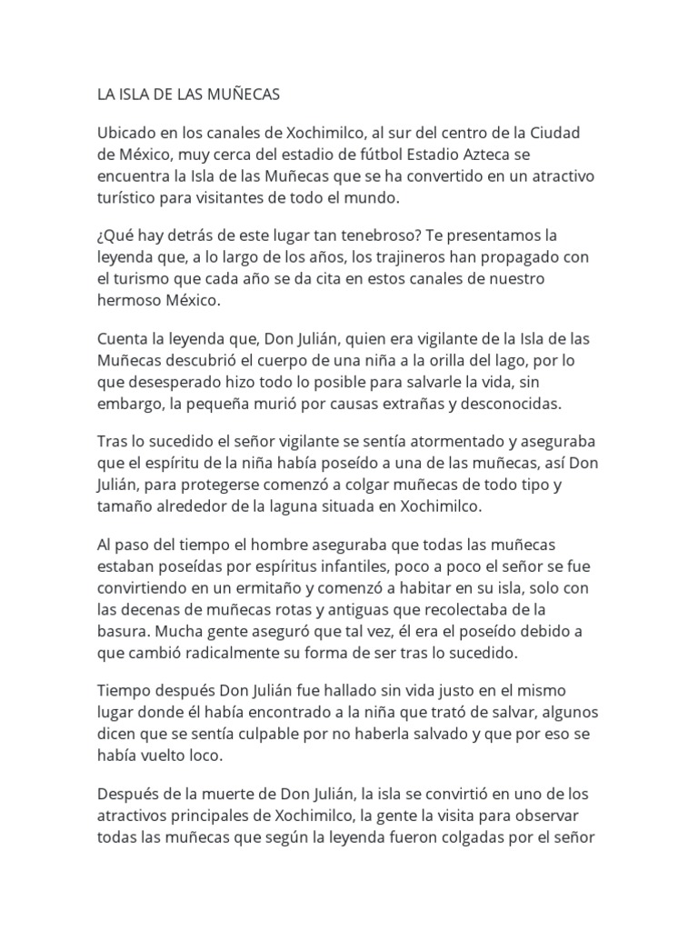 siglo XVI. Y que hasta la fecha, al ser contado sigue causando miedo entre las