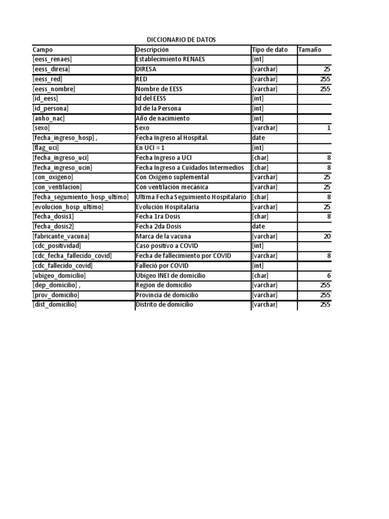 DICCIONARIO DE DATOS