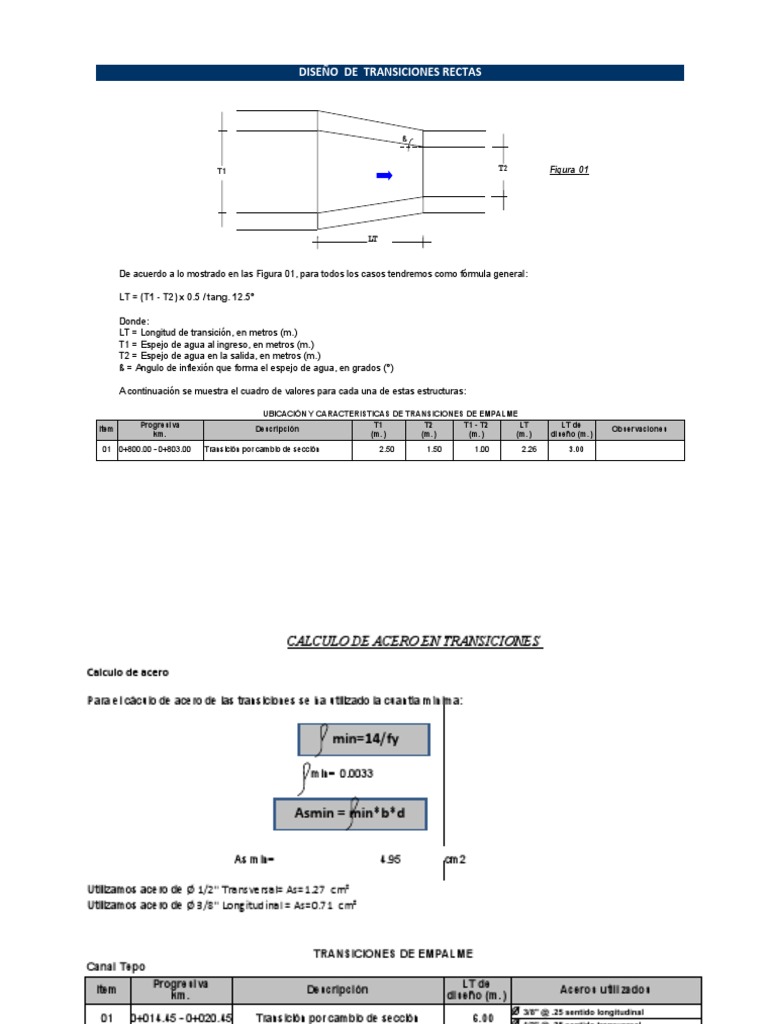 01 0+800.00 - 0+803.00 Transición por cambio de sección 2.50 1.50 1.00 2.26 3.00