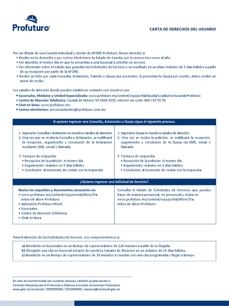 • Sucursales, Módulos y Unidad Especializada: [Link]/content/wps/portal/Ayuda/Localiza-tu-Sucursal-Profuturo