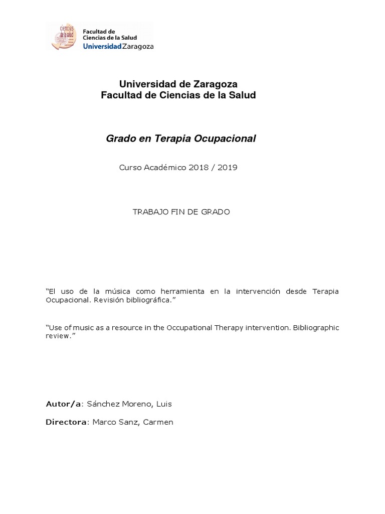 (6). A su vez, por su lado, la música como ocupación rehabilitadora, dándole