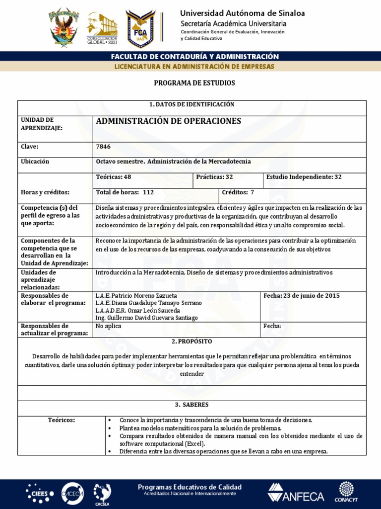 Componentes de la Reconoce la importancia de la administración de las operaciones para contribuir a la optimización