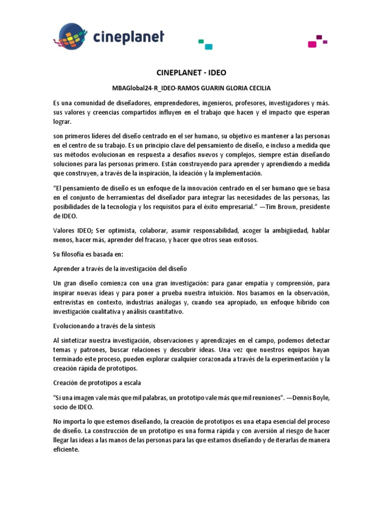 El proceso creativo de la empresa IDEO, se caracteriza por tener un proceso creativo el cual se