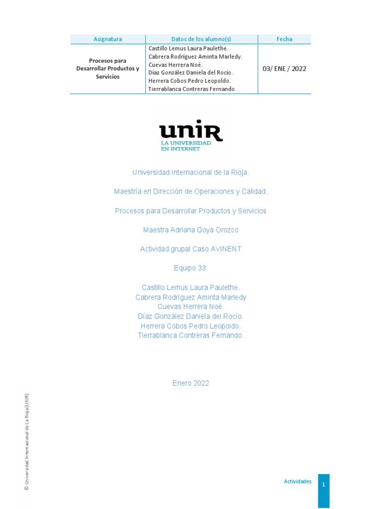 requeridos es alentador, lo que puede llevar a AVINENT a nuevos niveles de