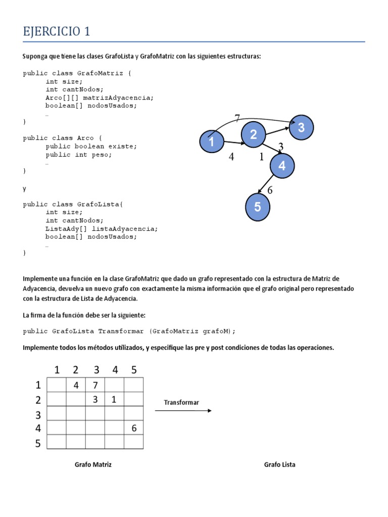 Suponga que tiene las clases GrafoLista y GrafoMatriz con las siguientes estructuras:
