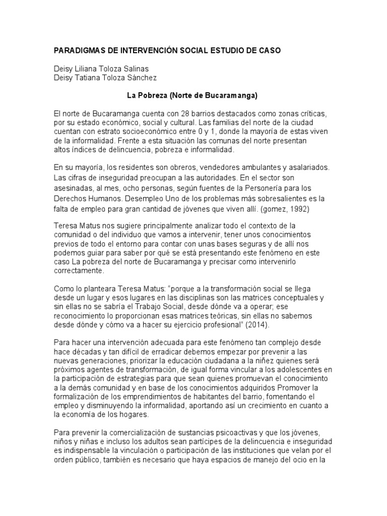 caso La pobreza del norte de Bucaramanga y precisar como intervenirlo
