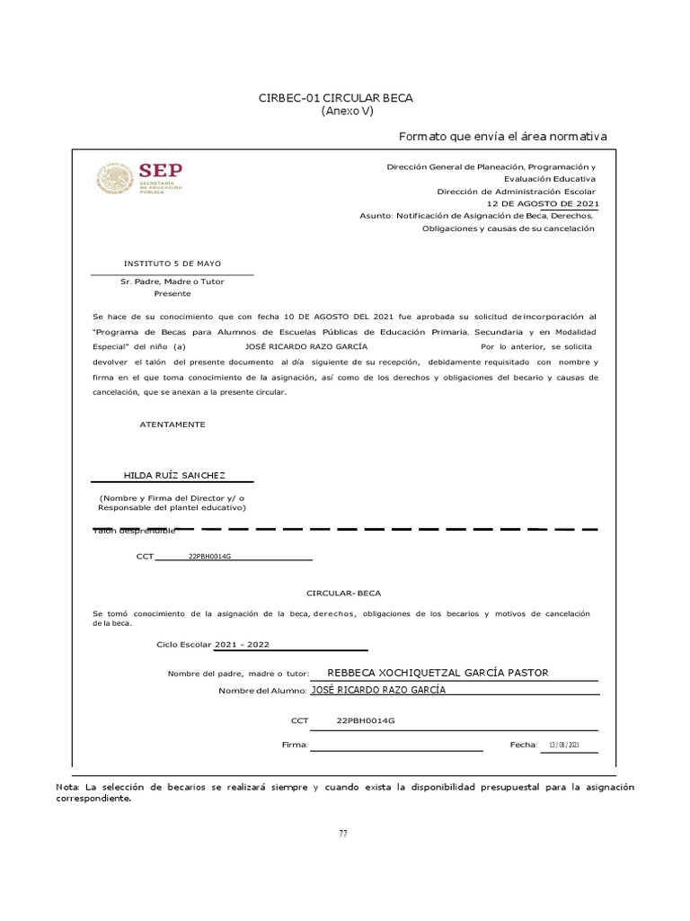 Nota: La selección de becarios se realizará siempre y cuando exista la disponibilidad presupuestal para la asignación