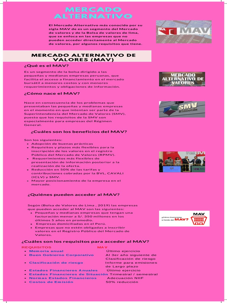 Bolsa de Valores de Lima . (Abril de 2019). Mercado Alternativo de Valores. Obtenido de http://168.121.49.4/mav/MAV-