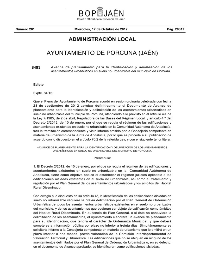 de Porcuna en tramitación (ya aprobado provisionalmente por el Pleno de esta