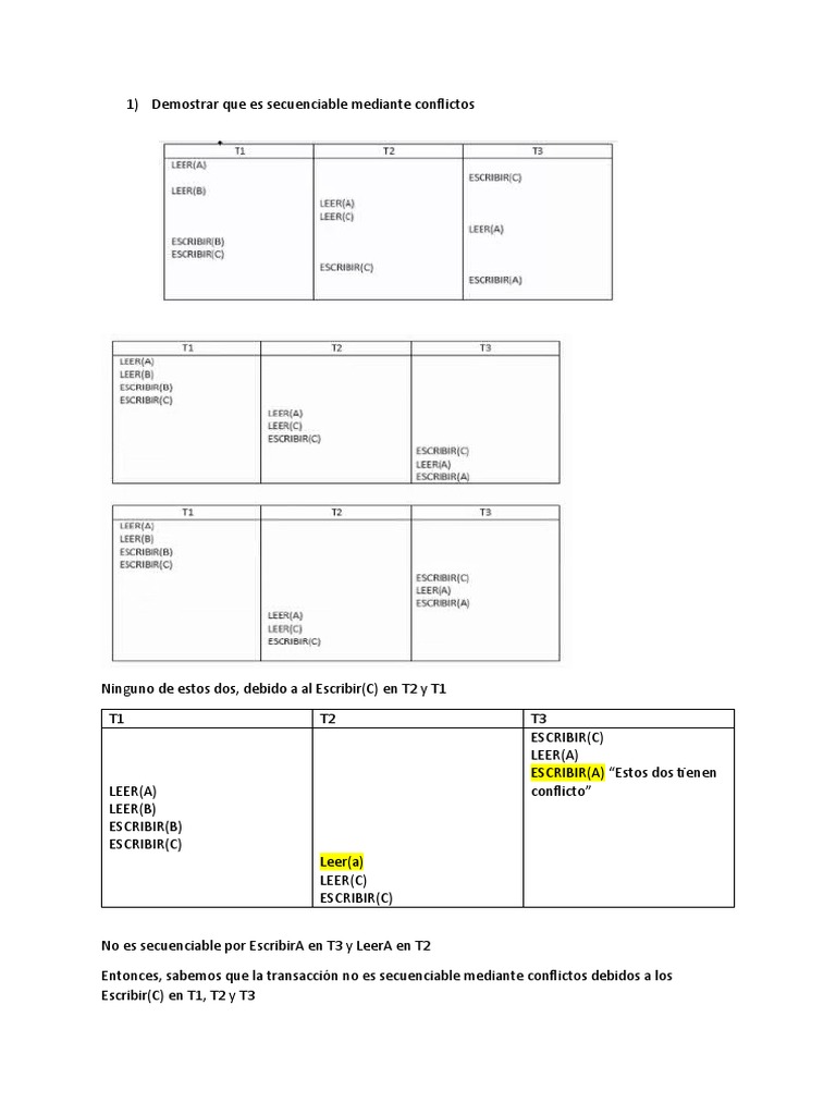 1) Demostrar que es secuenciable mediante conflictos