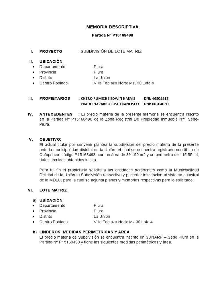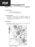 I. PROYECTO : SUBDIVISIÓN DE LOTE MATRIZ