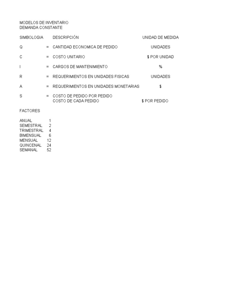 S = COSTO DE PEDIDO POR PEDIDO