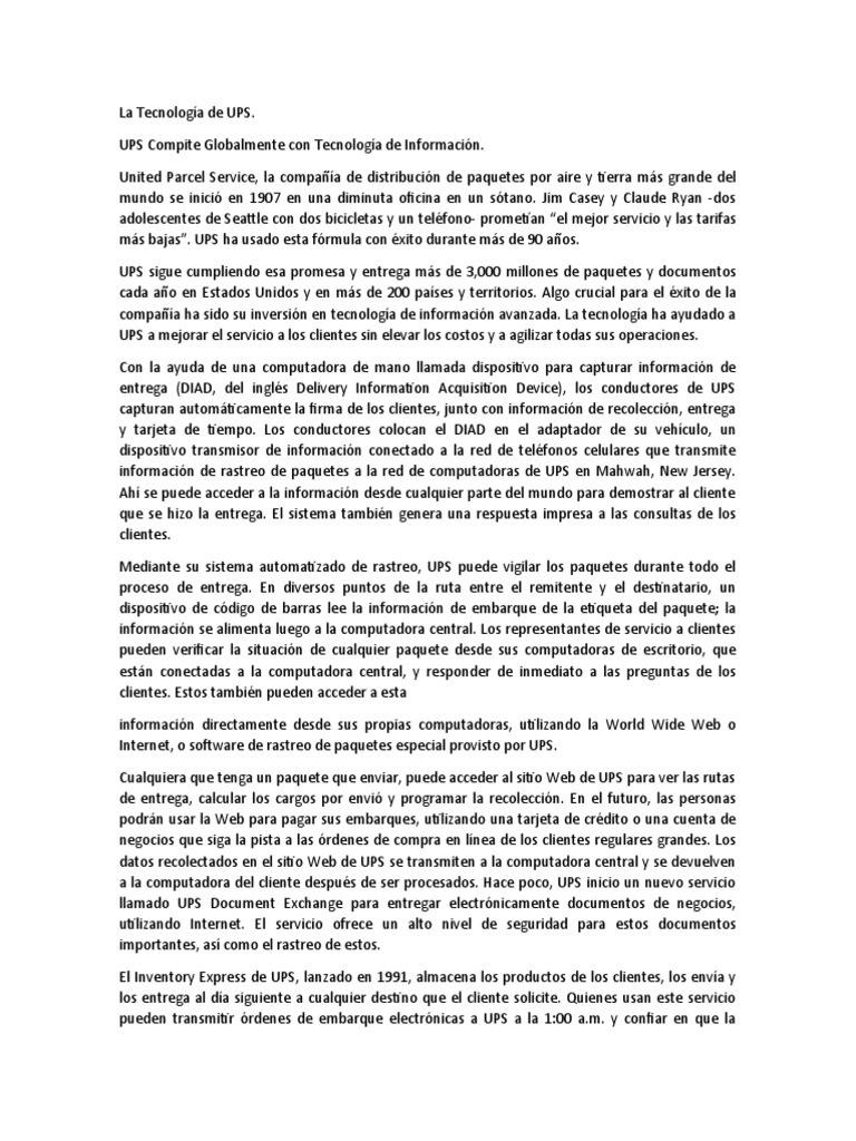 UPS Compite Globalmente con Tecnología de Información.
