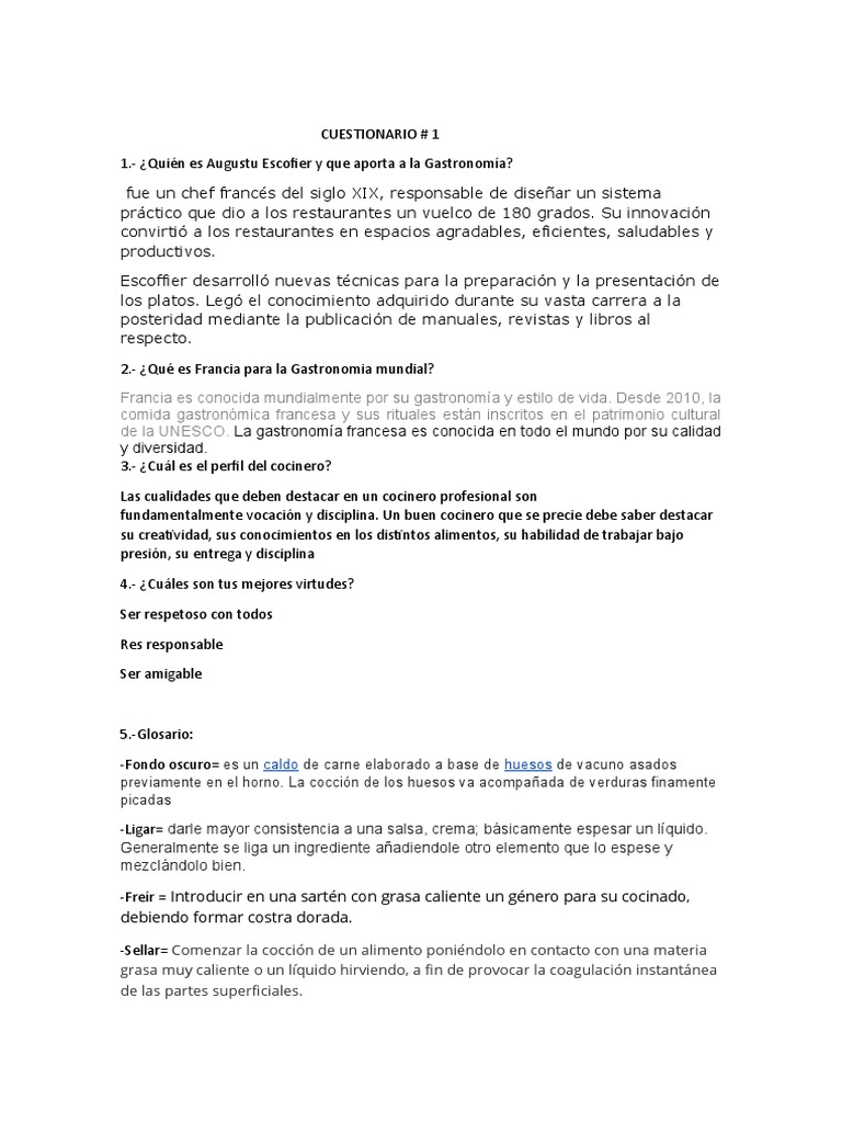 1.- ¿Quién es Augustu Escofier y que aporta a la Gastronomía?