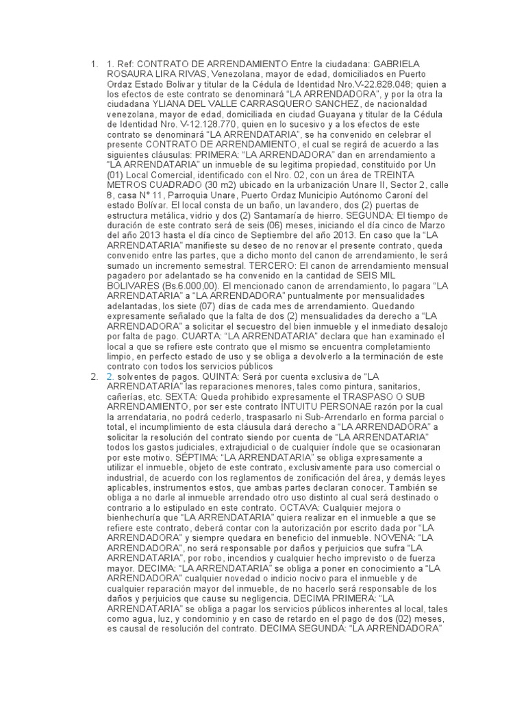 Ref: CONTRATO DE ARRENDAMIENTO Entre la ciudadana: GABRIELA