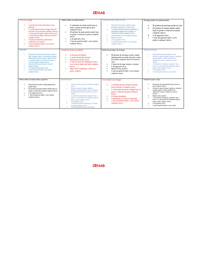 Fruta con cotagge Jamón asado con queso panela Tostada de bistec asado en casa Pechuga asada con queso panela