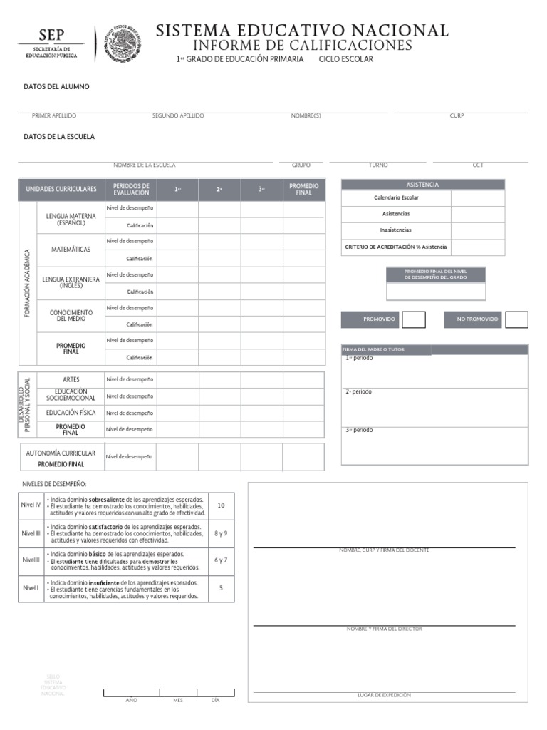 1er GRADO DE EDUCACIÓN PRIMARIA CICLO ESCOLAR