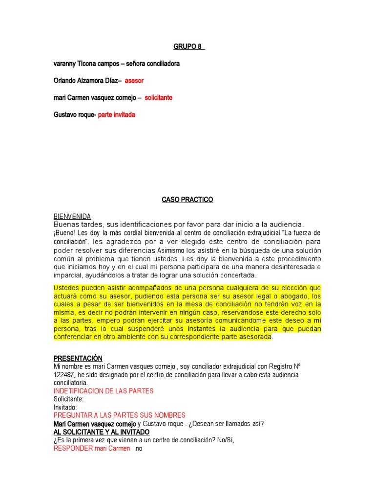 conciliación”. les agradezco por a ver elegido este centro de conciliación para