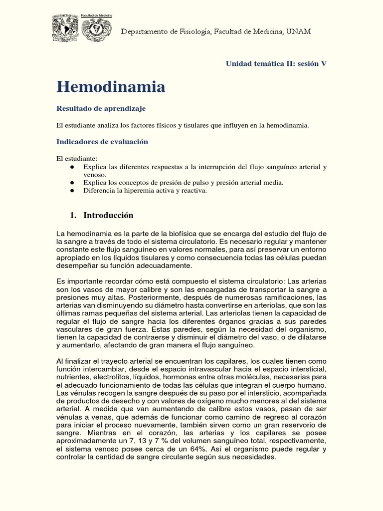 La hemodinamia es la parte de la biofísica que se encarga del estudio del flujo de