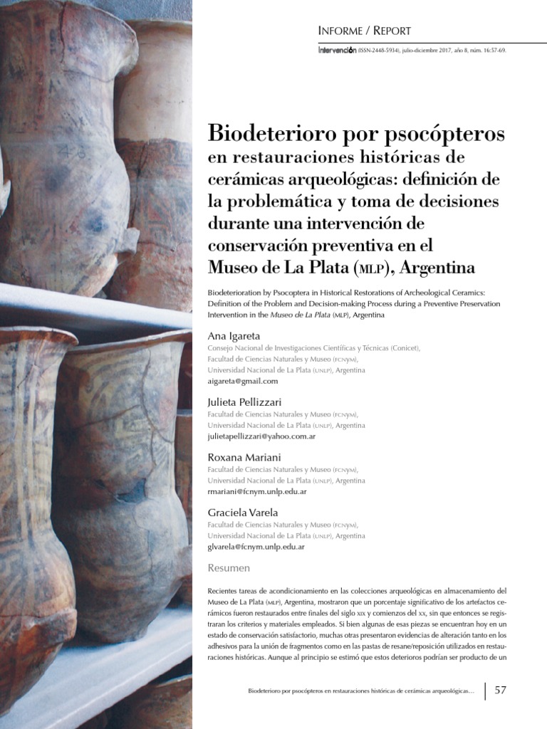 Psocoptera, adhesive; repairs; historical sobre bienes patrimoniales y que incluyen de La Plata (unlp), cuya directora es la doctora