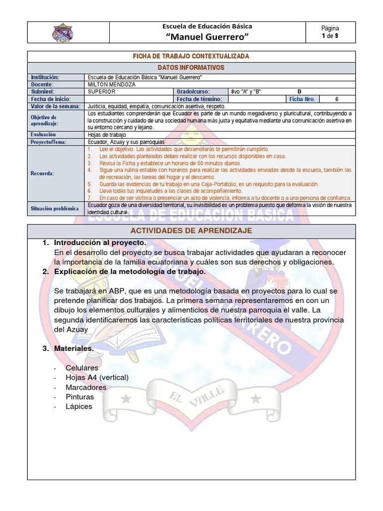 Institución: Escuela de Educación Básica “Manuel Guerrero”