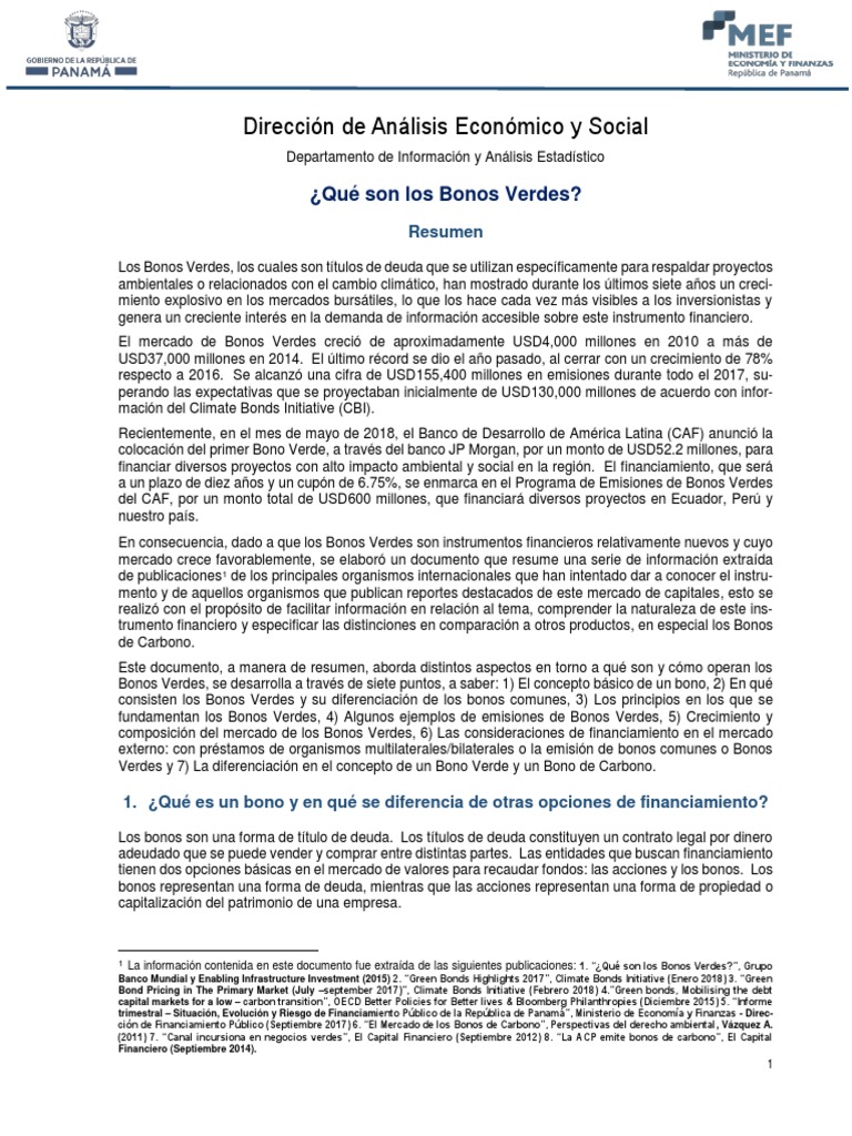 1 La información contenida en este documento fue extraída de las siguientes publicaciones: 1. “¿Qué son los Bonos Verdes?”, Grupo