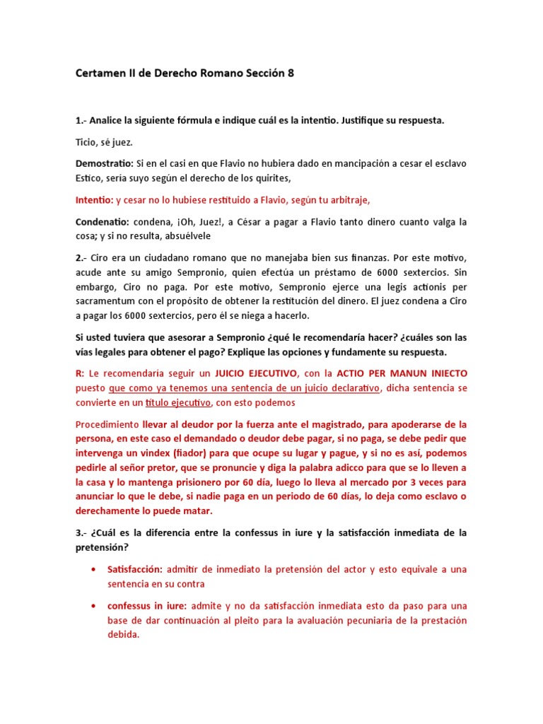 Certamen II de Derecho Romano Sección 8