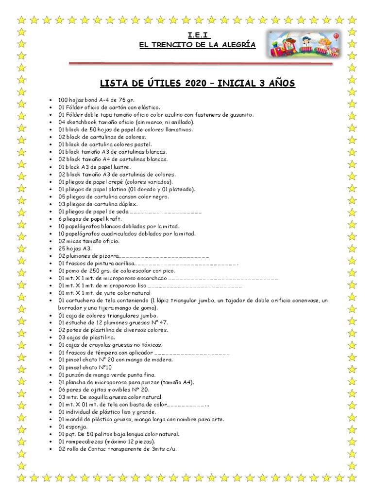 LISTA DE ÚTILES 2020 – INICIAL 3 AÑOS