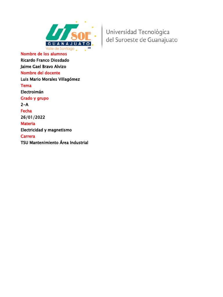 Planteamiento del De igual manera comprobar cualitativamente que en un electroimán, la intensidad