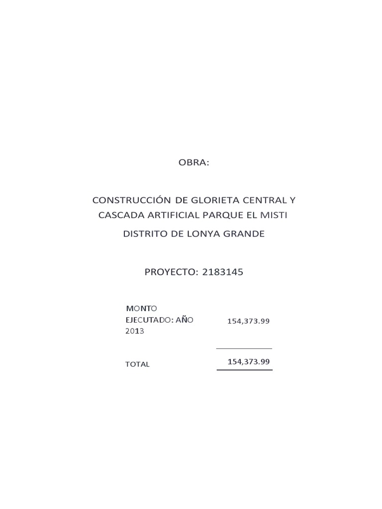 costo final de obra asciende a la suma de S/. 154 373.99 (CIENTO CINCUENTA Y CUATRO MIL