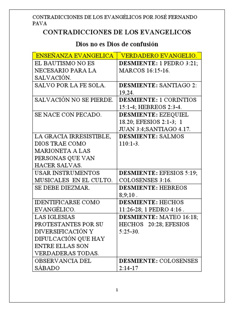 CONTRADICCIONES DE LOS EVANGÉLICOS POR JOSÉ FERNANDO