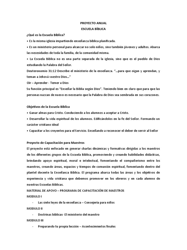 plantel docente la Enseñanza Bíblica. El programa abarca todas las áreas y los objetivos de