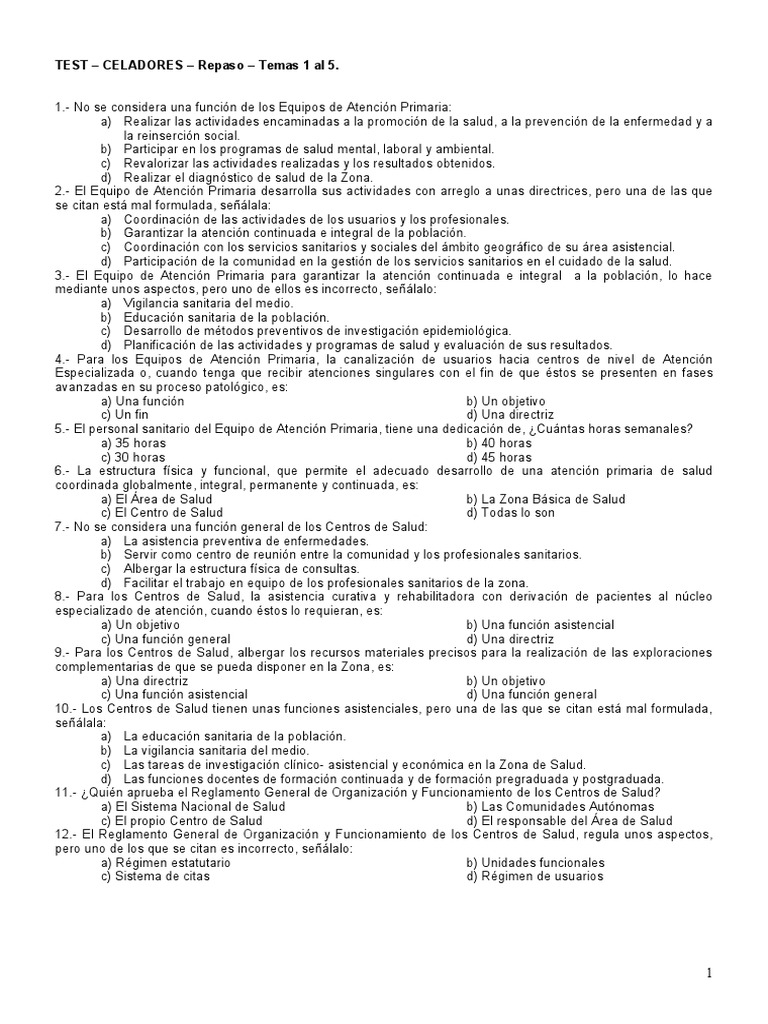 TEST – CELADORES – Repaso – Temas 1 al 5.