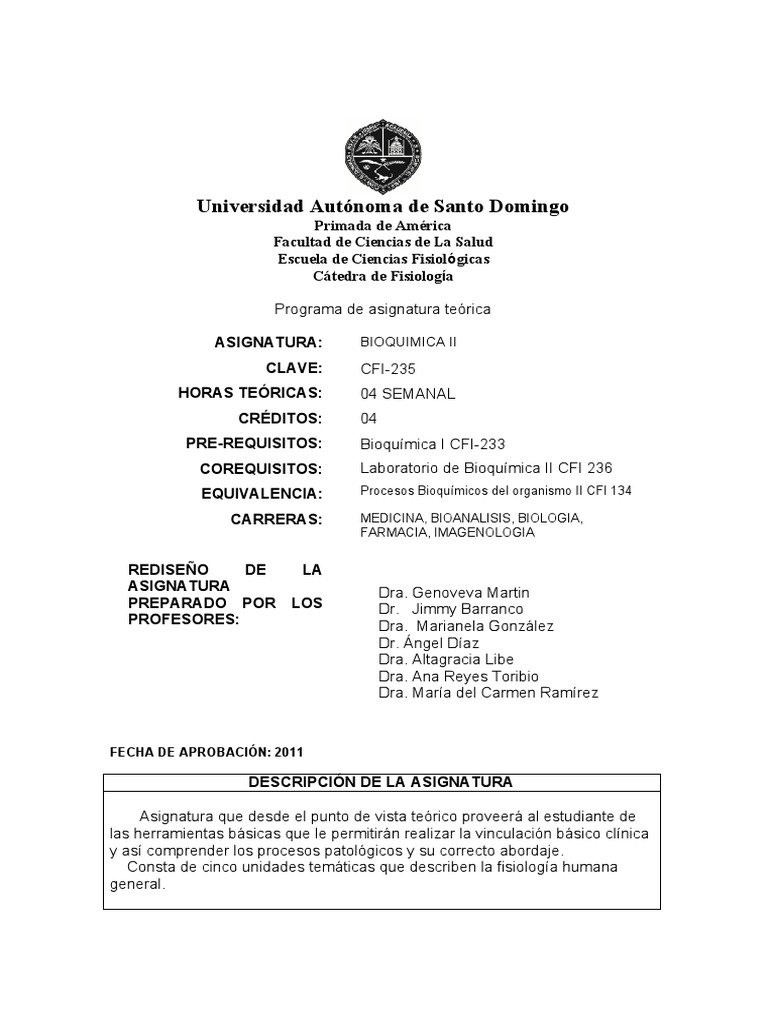 PRE-REQUISITOS: Bioquímica I CFI-233