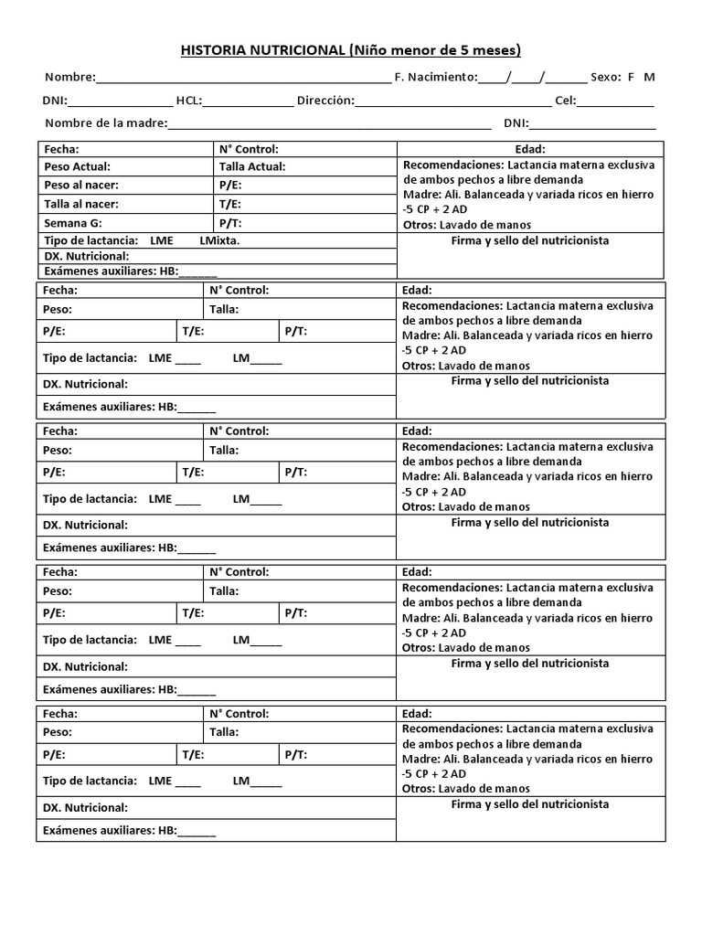 HISTORIA NUTRICIONAL (Niño menor de 5 meses)