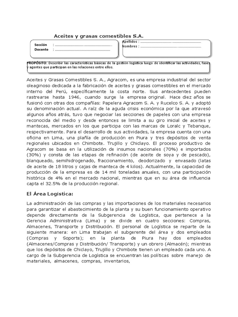 Aceites y Grasas Comestibles S. A., Agracom, es una empresa industrial del sector