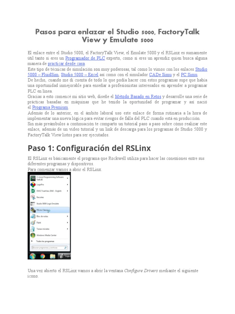 El enlace entre el Studio 5000, el FactoryTalk View, el Emulate 5000 y el RSLinx es sumamente