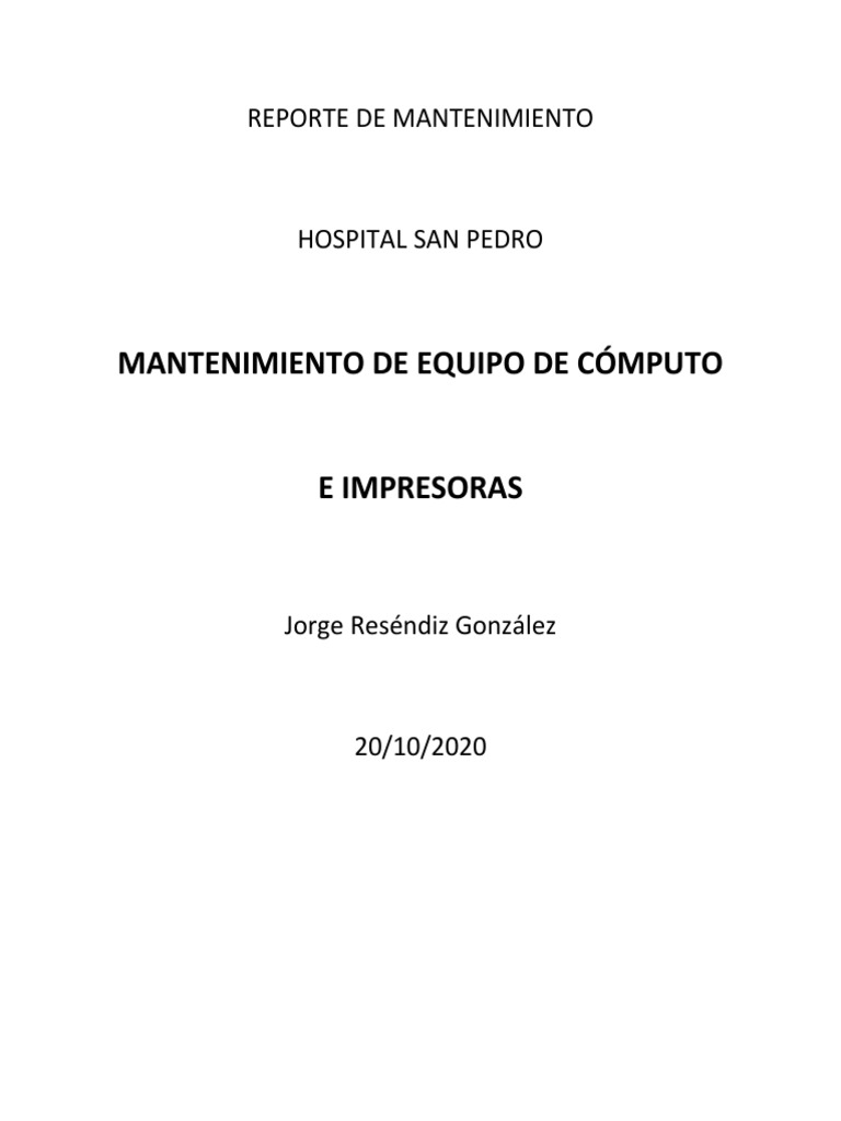 mantenimiento de los equipos de cómputo y sus impresoras se realizará los 15 primeros