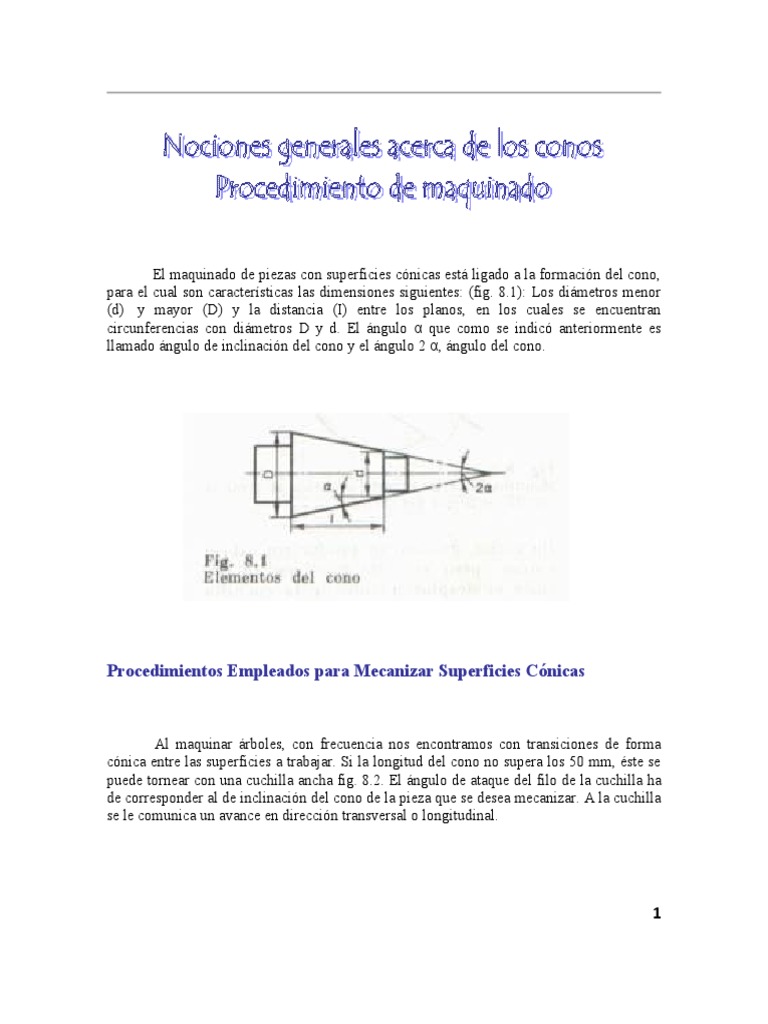 El maquinado de piezas con superficies cónicas está ligado a la formación del cono,