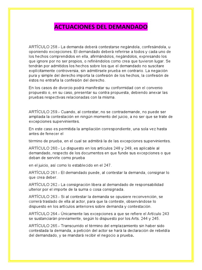 ARTÍCULO 258.- La demanda deberá contestarse negándola, confesándola, u